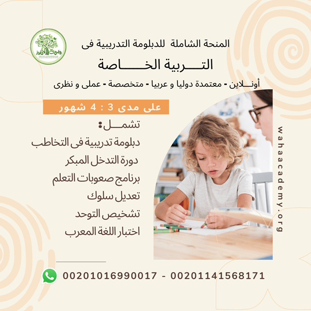 العلاج بالفن التشكيلى الدبلومة التدريبية المتخصصة أونلاين Art Therapy Diploma واحة التميز للتدريب الأقوى فى الوطن العربي بخبرات ٢٥عاما الدفعة الثامن .. باعتماد دولي امريكي من المعهد الأمريكي للدراسات التربوية وتنمية المورد البشري بمسمي دبلومة تدريبية ومن واحة التميز للتدريب ما زالت الفرصة مستمرة للانضمام للطموحين و الطموحات و الفنانين و الفنانات فقط للراغبين والراغبات فى نقلة نوعية و إنجاز تطوير فى حياتهن المهنية و الشخصية . https://i.suar.me/elxzQ/l سوف تبدأ أقوى دبلومة تدريبية متخصصة فى : العلاج بالفن التشكيلى أونلاين Art Therapy Diploma online . الموعد كل أحد من 4.30 مساء بتوقيت مصر 5.30 مساء بتوقيت مكة المكرمة الاعتمادات : دبلومة تدريبية من المعهد الامريكى للدراسات التربوية و تنمية المورد البشري American Institute for Educational Studies and Human Resource Development و اعتماد دبلومة تدريبية من واحة التميز للتدريب كارنيه عضوية من واحة التميز للفنانات التشكيليات و الأخصائيات النفسيات و المعلمات و العاملات في تعديل سلوك الكبار والصغار و تحليل الشخصيات والمرشدين التربويين والأسريين واللايف كوتشينج طورى تخصصك من خلال عدد كبير من البرامج العلاجية من خلال الفن و الاختبارات لتأهيل الصغار و الكبار بصورة احترافية و ذوى احتياجات خاصة وطبيعيين المدربة / د أمـــــل الحديــــدى دكتوراة أكاديمية متخصص فى الفنون وممارسة عملية للعلاج النفسي و علاج الإدمان بالفنون التشكيلية أكثر من 25 عاما و متخصصة فى تأهيل ذوى الاحتياجات الخاصة بالفن التشكيلى بمستويات عليا بكبرى الجامعات و المستشفيات دعم فنى ومتابعة طول فترة الدبلومة التدريبية المحــاور للدبلومة : أهداف العلاج بالفن وطرق التدريب عليه تحليل لنماذج من رسوم وأنشطة فنية للأطفال تأثير العلاج بالفن علي الأطفال مواصفات حجرة العلاج بالفن تحليل الشخصيات من خلال الرسومات الهندسية وتأثيرها النفسي الدلالات النفسية لرسومات الأطفال تحليل الشخصيات من خلال الرسم ومكانها علي الورق _ رسومات الأطفال وتحليلها اختبار رسم الأسرة العلاج بالفن وحالات A D H D أعراض نقص الانتباةوطرق علاجها بالفن تحليل لرسومات اطفال نقص الانتباة مع عرض لجلسات العلاج بالفن للأطفال العلاج بالفن وحالات التوحد Autism وفوائد العلاجية تحليل رسوم لأطفال التوحد متلازمة داون _ أعراض متلازمة الداون _تحليل لرسومات أطفال الداون كيفية تنمية مهارات الرسم عند أطفال متلازمة داون اختبار h-t-p المنزل والشجرة والشخص وتاثيرة علي أطفال الداون اللون وتأثيرة النفسى و العلاجي في تحسين الصفات الشخصية بالرسم الاختبارت الاسقاطية protectiv Test _معني الاسقاط في الفن الشروط الواجب توافرها في الاختبارات النفسية و المزيد للتواصل و الحجز واتساب : 00201016990017 أو 00201141568171 استمارة التسجيل المبدئى : https://bit.ly/3WuYNko الموقع الالكترونى لواحة التميز للتدريب https://wahaacademy.org/ البيدج الرئيسي لواحة التميز للتدريب على الفيسبوك : https://bit.ly/3wnovgk https://i.suar.me/q1aeA/l https://i.suar.me/l854M/l https://i.suar.me/NYPXV/l |