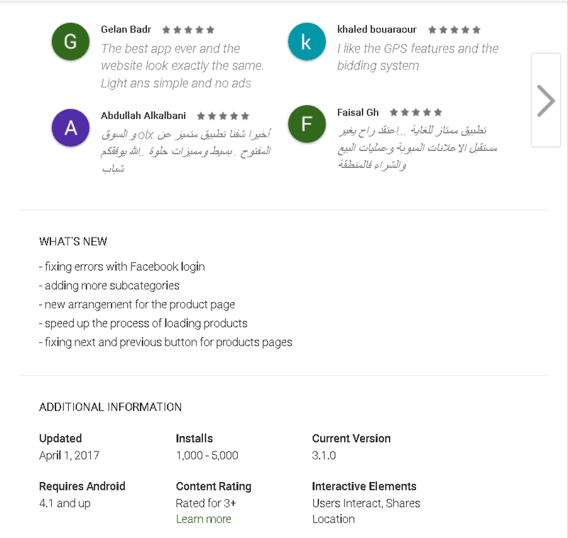 https://youtu.be/NHd63WmYzx0 https://i.suar.me/8da6/m طراباندو تطبيق متكامل لعمليات البيع والشراء بالإضافة للإعلانات المبوبة موجه للهواتف الذكية - ترغب في بيع أو شراء سلعة جديدة أو مستعملة - تتعامل بالبيع والشراء والتجارة بشكل ظرفي أو دائم - تمتلك محلا تجاريا أو تدير عملا منزليا وترغب في تسويق منتجاتك - تبحث أو تقدم خدمات بأسرع وقت وفي حيز جغرافي معين كخدمات التصميم أومجالسة الأطفال - تبحث عن وظيفة أحلامك - تبحث عن اقتناص فرص الشراء أو البيع في دائرة حدودك أو في إيطار غير محدود طراباندو اللآن بين يديك يستخدم التطبيق أغلب مميزات الهواتف الذكية من استخدامات الكاميرا وأنظمة تحديد المواقع بدقة المواقع الإلكترونية ستخبرك ان ميزات تطبيق الهاتف ستكون اقل من ميزات الموقع الإلكتروني . حتى التصمم مختلف وأماكن الأزرار مختلفة . مع طراباندو حرصنا على ان تكون التجربة متطابقة تماما شكلا ومحتوى ومتزامنة تماما مع بعض . ولو أننا نفضل ان تستخدم التطبيق لخصائص الدقة والمرونة بإمكانك زيارة الموقع الإلكتروني www.trabandou.com والتمتع بنفس الخصائص والمميزات. (لايقدم internet explorer تجربة كاملة لدى يفضل استخدام ب google chrome أو firefox أو Opera عند زيارة الموقع الإلكتروني) لست بحاجة لإختيار حدودك الجغرافية . بلدك أو عملتك المحلية . البرنامج مرن جدا وبإمكانك الإنتقال بنفس التطبيق بين 22 دولة من دون أن تضطر لتغيير أي شي ....كل شيئ مجهز للعمل أوتوماتيكيا . سيتم التوسع لاحقا لإضافة عدد اكبر من الدول . والمزيد من اللغات البرنامج مزود بنظام مزايدة كامل bidding system الشبيه بموقع ايباي طراباندو هو تطبيق الإعلانات الوحيد المزود بنظام تحديد المواقع للإعلانات يغطي كامل المنطقة العربية. كل سلعة أو خدمة في طراباندو لديها موقع جغرافي مستقل توقف عن مشاركة رقم هاتفك أو ايميلك الخاص حتى من باب المناقشة فقط فالتطبيق مزود بنظام محادثة فوري realtime مثل واتساب بامكانك المناقشة والتكلم مع صاحب السلعة أو الخدمة. https://i.suar.me/d7j7/m التطبيق مزود بالرسائل التنبيهية في كل مرة تتلقى رسالة من مستخدم ثاني . نظام تقييم البائع والمشتري ذكي جدا ولن يكون في المتناول فقط بضغطة زر ....ستحصل عليه اثناء إجرائك لعمليات حقيقية ومناقشة فعلية مع بائع أو مشتري . للتنزيل من متجر قوقل https://play.google.com/store/apps/d...bandou.khaledb صفحة التطبيق على فايسبوك https://www.facebook.com/trabandou/ صفحة التطبيق على انستيقرام https://www.instagram.com/trabandou_app/ صفحة التطيق على تويتر https://twitter.com/TrabandouA |