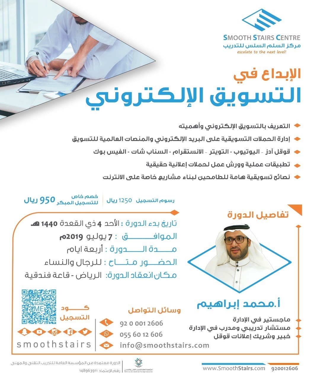 هل تحلم بأن تكون مبدعاً في مجال التسويق الإلكتروني وتصنع مشروعك القادم .. التسويق الإلكتروني أصبح من أهم الوظائف المستقبلية التي تطلبها الشركات حاليا .. بادر بالتسجيل في هذه الدورة وامتلك المهارات التسويقية على المنصات العالمية https://goo.gl/MNtrtV https://i.suar.me/eenAQ/l للاستفسار عبر الواتس اب : https://bit.ly/2S3UjVy أو الاتصال بالرقم الموحد : 920012606 أو على الجوال : 0556012606 تاريخ الدورة : 4 ذي القعدة 1440هـ الموافق 7 يوليو 2019 ولمدة 4 ايام من الساعة 4:30 - 9:30 م محاور الدورة : التعريف بالتسويق الإلكتروني وأهميته إدارة الحملات التسويقية على البريد الإلكتروني والمنصات العالمية للتسويق قوقل آدز – اليوتيوب - التويتر – الانستقرام - السناب شات - الفيس بوك تطبيقات عملية وورش عمل لحملات إعلانية حقيقية نصائح تسويقية هامة للطامحين لبناء مشاريع خاصة على الانترنت السعر : 1250 ريال خصم خاص للمجموعات والتسجيل المبكر والطلبة : 950 ريال رابط التسجيل المختصر : https://goo.gl/MNtrtV رقم حساب المركز في مصرف الراجحي : 609608010005515 IBAN :SA1580000609608010005515 نرجو ارسال نسخة من الايصال بعد السداد على رقم جوال المركز 0556012606 |