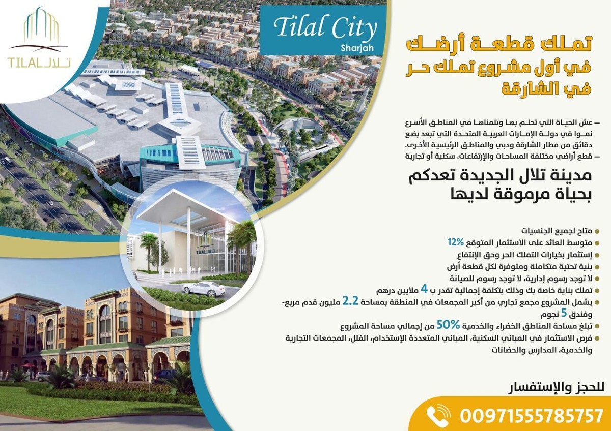 تملك اراضي سكنية استثمارية في قلب الشارقة الجديدة - مدينة تلال https://i.suar.me/XavpY/l تعتبر شركة تلال العقارية أول مطور عقاري في إمارة الشارقة يطرح مشروع متكامل " مدينة تلال " تعتبر مدينة تلال أول مشروع سكني تجاري مشترك بين القطاع الحكومي والقطاع الخاص و الوجهة الاستثمارية الأمثل في إمارة الشارقة. مدينة تلال، مشروع جسَّدَ رؤية صاحب السمو الشيخ الدكتور سلطان بن محمد القاسمي عضو المجلس الأعلى حاكم الشارقة في تطوير "الشارقة الجديدة". 25 مليون قدم مربع إجمالي مساحة المشروع. يمكنك الاتصال على الرقم التالي لمزيد من التفاصيل : 00971555785757 او يمكنك الضغط هنا للتواصل مباشة واتس اب: https://wa.me/971555785757 https://i.suar.me/nypBz/l |