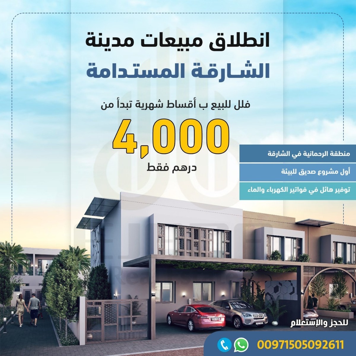 فلل للبيع في مدينة الشارقة المستدامة في منطقة الرحمانية ابتداء من 4000 الف درهم فقط قسط شهري https://i.suar.me/PLG1w/l لمزيد من التفاصيل الرجاء التواصل موبايل و واتس أب : 00971505092611 هذا المشروع هو ثمرة تعاون بين هيئة الشارقة للاستثمار والتطوير (شروق) و”دايموند ديفلوبرز” للتطوير العقاري المتخصصة ببناء المدن المستدامة الموقع : الشارقة الرحمانية 1 بمدخل مباشر من شارع الشيخ محمد بن زايد مساحة الأرض : 7.2 مليون قدم مربع المجمع سكني مغلق ينقسم المشروع إلى منطقة سكنية ومنطقة متعددة الاستخدام يمكنك الاتصال على الرقم التالي لمزيد من التفاصيل : 00971505092611 او يمكنك الضغط هنا للتواصل مباشرة واتس اب: https://wa.me/971505092611 #مدينة_الشارقة_المستدامة #فلل_للبيع_في_الشارقة #فلل #الشارقة #هيئة_الشارقة_للاستثمار #شروق #الرحمانية sharjah sustainable city #shrjah_sustainable_city #sharjah #uae #properties #property |