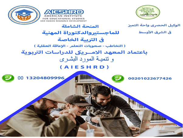 منحة الماجستير المهنى التدريبى للصحة النفسية و الإرشاد الأسرى و التربوى .. أونلاين حقق طموحك و ارتقى بقدراتك و انضم لأقوى برنامج ماجستير و دكتوراة مهنى تدريبى أونلاين عن بعد للمؤهلات العليا فقط بالوطن العربى ، البداية الأربعاء 30 سبتمبر 2020 م . حصرى من أكاديمية واحة التميز للتدريب باعتماد المعهد الامريكى للدراسات التربوية و تنمية المورد البشرى المنحة مدعمة بأكثر من 50 % بمناسبة العيد الثامن لأكاديمية واحة التميز للتدريب العرض الحالى لفترة محدودة ينتهى 6 - 9 – 2020 م ، العدد محدود بأسبقية الحجز : بمقدم 250 $ وأو 938 ريال و الباقى على أقساط شهرية الدراسة للماجستير المهنى التدريبي 8 شهور ... و الدراسة للدكتوراة المهنية التدريبية 12 شهر مقسمة فترة دراسة عن بعد .. والباقي للبحث و المناقشة و القراءة المتعمقة المحتـــوى : علم نفس الطفل علم نفس اجتماع إرشاد أسرى تربوى إدارة وتعديل السلوك للأطفال و المراهقين جديد علم نفس اكلينيكى تغذية علاجية لايف كوتشينج المنحة مدعمة باعتماد المعهد الامريكى للدراسات التربوية و تنمية المورد البشرى ِِAMERICAN INSTITUTE FOR EDUCATIONAL STUDIES AND HUMAN RESOURCE DEVELOPMENT الاعتمـــــادات شهادة بالماجستير المهنى التدريبى فى معتمدة من المعهـــد الامــــريكى للدراسات الــــتربوية وتنمية المورد البشري ( اعتماد دولى امريكى يقبل الخارجية الامريكية برسوم إضافية ) ) شهادة بمسمى ماجستير مهنى سريع باعتماد من المعهد العربى للدراسات – اتحاد المعلمين العرب - و موثقة خارجية مصرية شهادة بماجستير تدريبى فى التخصص من أكاديمية واحـة التمــيز للتدريب عدد 5 شهادات بالدبلومات و المواد التى يتم دراستها من واحة التميز للتدريب مصر كارنيه من المعهد الامريكى للدراسات التربوية و تنمية المورد البشرى كارنيه من أكاديمية واحة التميز للتدريب استمارة التسجيل الأولى مع ملاحظة اتمام الحجز بإرسال مقدم الحجز و الأوراق https://cutt.us/Jd6P7 البيدج الرئيسى على الفيسبوك لواحة التميز للتدريب https://cutt.us/TXZF1 الموقع الالكترونى لواحة التميز للتدريب http://wahaacademy.org للتواصل : 00201141568171 - 00201016990017 واتس وايمو وفايبر https://i.suar.me/gxG4l/l متاحة أيضا المنح التالية https://i.suar.me/yoGp7/l https://i.suar.me/AdjnV/l https://i.suar.me/m2G5j/l #الصحة_النفسية #علم_النفس #التخاطب #صعوبات_التعلم #العلاج_السلوكى_المعرفى #التربية_الخاصة #الإرشاد_الأسرى #الإرشاد_التربوى #تعديل_السلوك |