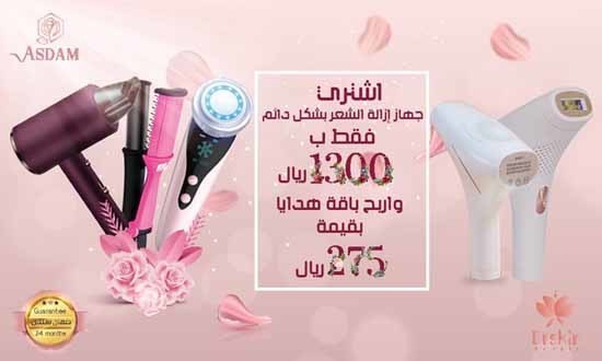 اشترى الان جهاز ازاله الشعر من متجر أسدام واحصل على هدايا عديده