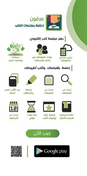 https://i.suar.me/0m4dr/m دفتر مراجعة كتب إلكتروني يساعدك على الاحتفاظ بملخصات كتبك (اقتباسات، أطروحات) بشكل منظم، يمكنك الرجوع إليها في لاحقًا من خلال ميزة البحث بسهولة. يضبط وقت المطالعة من خلال مؤقتة ليساعدك على خلق عادة القراءة يتيح لك Markoon تسجيل خواطرك أو قوائم كتبك بسهولة لاستعادتها بنفسك ومشاركتها مع الأصدقاء وأفراد العائلة. لتحميل التطبيق مباشرة من على متجر جوجل بلاي عبر الرابط : مرقون - احتفظ بملخصات الكتب https://i.suar.me/lXKwA/m https://i.suar.me/mVKMj/m https://i.suar.me/yxKX7/m |