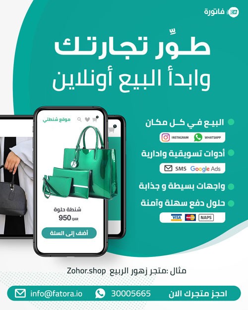 https://i.suar.me/547Ay/l العديد من أصحاب المشاريع لا يمتلكون الوسيلة الأفضل لتوسيع نشاطهم التجاري وزيادة مبيعاتهم وأرباحهم، قد تكون أنت واحد منهم!! فاتورة توفر لك الحل الأنسب والأفضل الذي سيساعدك في: - توسيع نشاطك التجاري - الحصول على عدد أكبر من العملاء - زيادة الأرباح والمبيعات جرب المتجر الالكتروني من فاتورة https://bit.ly/fatora-store أو من خلال رابط الإنستغرام : https://www.instagram.com/fatoraio/ https://i.suar.me/2jrZ9/l https://i.suar.me/LGr3o/l |