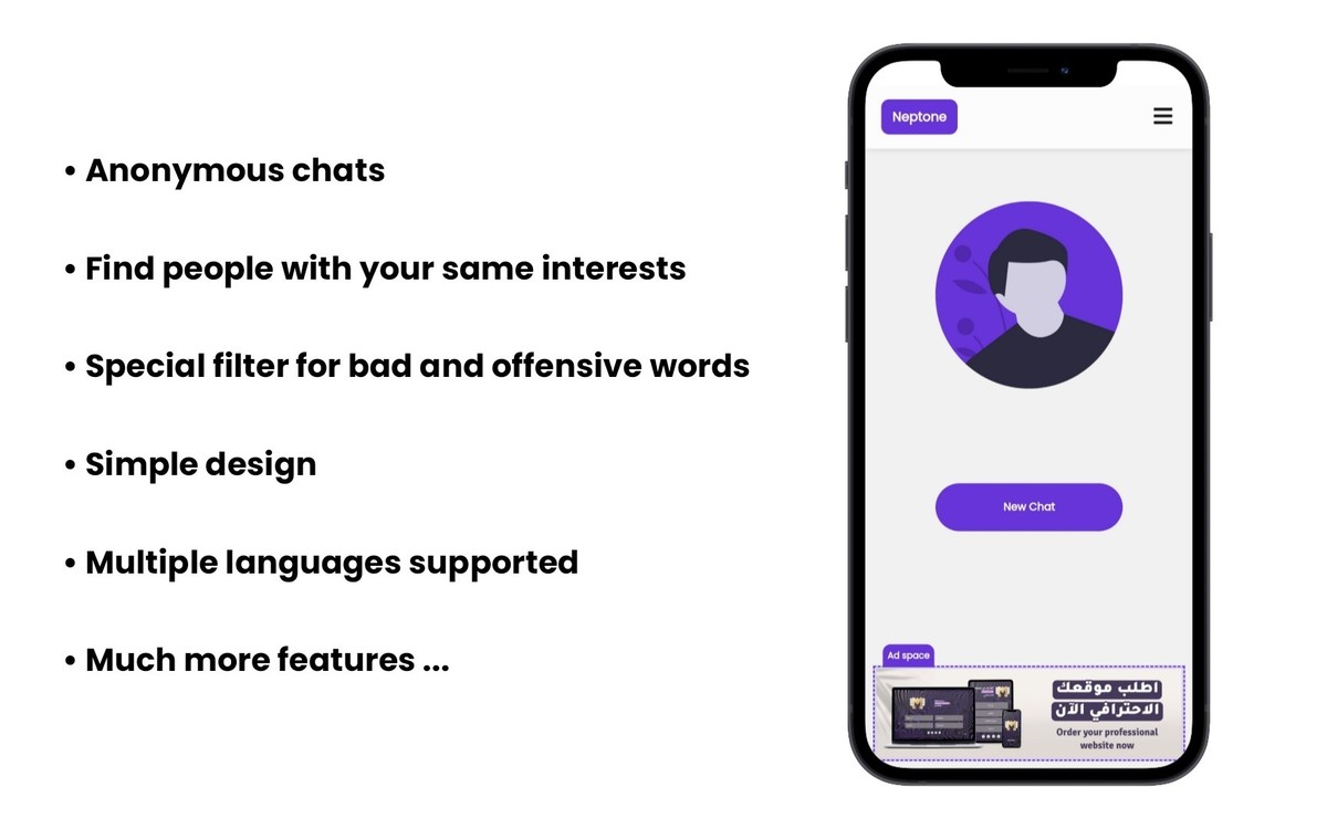 أهلاً في نبتون ! https://i.suar.me/dlgNP/l تعرف على أناس عشوائيين من نفس اهتماماتك و حافظ على خصوصيتك في الوقت نفسه https://i.suar.me/jKvrw/l Welcome to Neptone ! Find people with your same interests from around the world while you keep your privacy. https://i.suar.me/8QzNO/l سجل الدخول من هنا : Login from here : https://moneeraldakkak.github.io/Neptone/#/login |