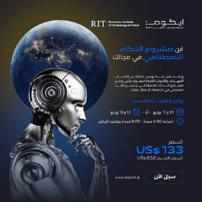 ابنِ مشروع الذكاء الاصطناعي في مجالك الخاص ورشة عمل لمدة يومان تمكنك من اكتساب المهارات والأدوات اللازمة لتتعرف وتبني وتدير مشاريع الذكاء الاصطناعي وتصبح قائداً مستقبلي في تخصصك أو مجال عملك. 10 & 11 يونيو, 2022 6:00 م - 8:00 م بتوقيت الرياض 12 & 13 يونيو, 2022 6:00 م - 8:00 م بتوقيت الرياض الانضمام للبرنامج لا يتطلب أي معرفة مسبقة في البرمجة كبون خصم ب 10% الكبون CAILP10 سجل الآن |
