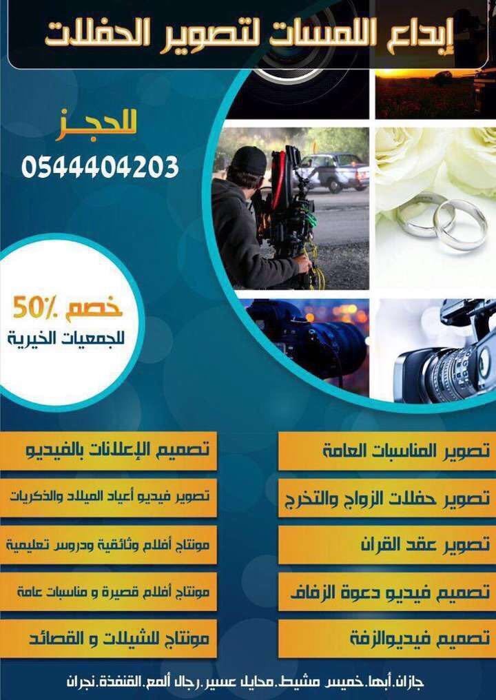 لتصوير الأفراح والحفلات والمناسبات وكل ما يخص الإنتاج الفني والمرئي وغيرها الكثير نغطي كافة المنطقة الجنوبية والساحل الأعمال المقدمة لا حصر لها مثلا : تصوير الزواجات والأفراح تصوير المنتجات والأطعمة تصوير العقارات والممتلكات والمباني تصوير الدورات والمحاضرات أفلام وثائقية مسلسلات برامج محاضرات تصميم انتاج اخراج عرض مرئي ومسرحي المعدات كاملة متوفرة بإذن الله كاميرات الفيديو السينمائية والفوتوغراف الكاميرات الطائرة السماعات آجهزة صوت وميكروفونات سلكية ولاسلكية كاميرات المغامرات القو برو العدسات الإحترافية بكامل أنواعها نقدم خدمه تصميم فلاتر سناب شات . تصميم فلاتر سناب شات ( افتتاح ، مهرجان ، مناسبة ، زواج ، حفلات الميلاد ، الخ.. ) لمشاركة لحظاتكم الجميلة في سناب شات. تطلع للكل الموجود في الموقع . المطلوب ::. 1_ الطلب قبل المناسبه بيومين او ثلاثه 2_ ارسل بيانات المناسبه ( اليوم والتاريخ والوقت ) 3_ ارسل وصف الموقع من قوقل ماب . ---------- تصميم تصاميم خاصة بشهر رمضان المبارك ----------- نقدم خدمة التصاميم الخاصة (...بنرات - فلاير - بروشر - كوفرات مواقع التواصل الإجتماعي - منشورات - إلخ ) 1 - إرسال المعلومات الكافية 2 - الصور أو اللوجو بجودة عالية 3 - التسليم بجودة عالية .............. ................ الدفع قبل تصميم منعاً للأحراج نقدم أفضل الأسعار فقط تواصل معنا للتواصل / 0544404203 رابط القناة على اليوتيوب https://www.youtube.com/channel/UCM2...Uo5jLjxm5Cb2-Q https://i.suar.me/eJx3O/m https://i.suar.me/5pd7Q/m https://i.suar.me/LPErx/m https://i.suar.me/a8oO9/m |