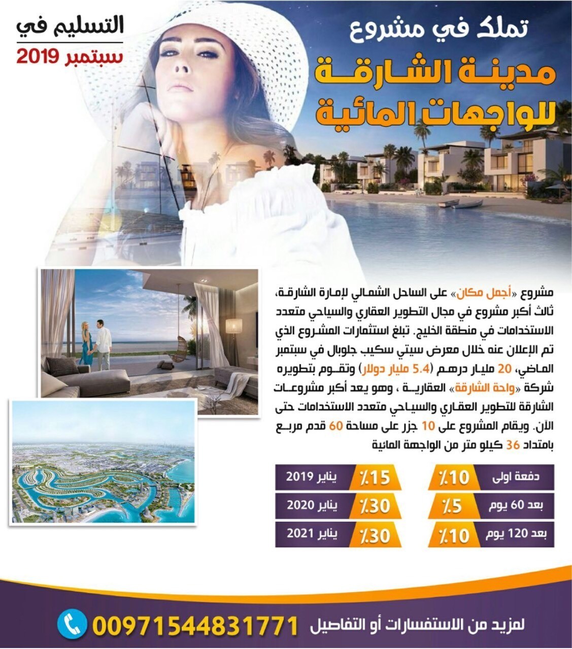 تملك في مشروع (فلل البحر) مدينة الشارقة للواجهات المائية https://i.suar.me/6EEop/l لمزيد من الاستفسارات أو التفاصيل : 00971544831771 مشروع( فلل البحر ) أجمل مكان على الساحل الشمالي لإمارة الشارقة، ثالث أكبر مشروع في مجال التطوير العقاري والسياحي متعدد الاستخدامات في منطقة الخليج. تبلغ استثمارات المشروع الذي تم الإعلان عنه خلال معرض سيتي سكيب جلوبال في سبتمبر الماضي، 20 مليار درهم (5.4 مليار دولار) وتقوم بتطويره شركة واحة الشارقة العقارية، وهو يعد أكبر مشروعات الشارقة للتطوير العقاري والسياحي متعدد الاستخدامات حتى الآن. ويقام المشروع على 10 جزر على مساحة 60 قدم مربع بامتداد 36 كيلو متر من الواجهة المائية. فلل أجمل مكان البحرية هو مشروع سكني فريد من نوعه يقع في جزيرة الشمس في مدينة الشارقة للواجهات المائية (SWFC).تم تصميم هذه الفلل بالتشطيبات المعمارية الرائعة وبتركيبة التحف والديكورات الداخلية الفاخرة،عدد هذه الفلل الانيقة (تملك حر) 321 فيلا،وتحتوي على وحدات من ثلاثة واربعة وخمسة وستة غرف نوم بمساحات مختلفة للأسر،وتأتي المساكن أيضا بخطة دفع لمدة سنتين بعد التسليم. تم تجهيز فلل أجمل مكان البحرية بمرافق عالمية المستوى يمكن لجميع أفراد العائلة الاستمتاع حيث تقدم بركة سباحة خاصة في الطابق الأرضي أو التمتع بوقت الفراغ مع الأصدقاء،كل غرفة نوم في الطابق الأول فسيحة ومزودة بغرفة لارتداء الملابس،وفي الطابق الثاني توجد شرفة رائعة لتناول القهوة،ومنطقة شواء مفتوحة للتمتع بمنظر البحر المفتوح،وتم تصميم وحدات أكبر بخمسة وستة غرف نوم بمصعد كهربائي للتحرك بسهولة داخل الفلل. تقع الفلل الفاخرة المقدمة من واحة الشارقة-المرحلة 1 من جزيرة الشمس،وهي واحدة من 10 جزر رائعة من مدينة الشارقة للواجهات المائية،وسيتم تطوير الجزر بالمرافق الرائعة والأساسية للحياة الحديثة،وتمتد جزيرة الشمس بحوالي 2.212.984 قدم مربع لعدد 321 فيلا وسيتم تخصيص مساحة الأرض المتبقية لشاطئ وشارع وحدائق ومسجد ومحلات تجزئة،وسيتمتع المقيمين في فلل أجمل مكان البحرية ببيئة خالية من التلوث مزينة بأفضل المرافق لحياة راقية وممتعة. خطة الدفع : • 10٪ – دفعة أولى • 5٪ – بعد 60 يوم • 10٪ – بعد 120 يوم • 15٪ – يناير 2019 • التسليم – سبتمبر 2019 • بعد التسليم – 30٪ – يناير 2020 • بعد التسليم – 30٪ – يناير 2021 لمزيد من الاستفسارات أو التفاصيل :00971544831771 مدينة الشارقة للواجهات المائية – واحة الشارقة – أجمل مكان – فلل البحر – شقق السعادة – شقق للبيع في الشارقة – شقق للبيع في الامارات – فلل للبيع في الشارقة – فلل للبيع في الامارات – استثمار–عبدالله الشكره– سلطان الشكره |