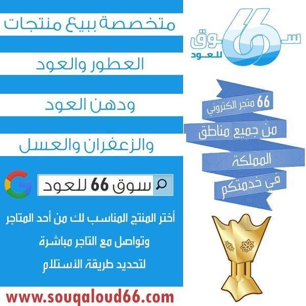 66متجر الكتروني من جميع مناطق المملكة في خدمتكم متخصصين ببيع العطور والعود ودهن العود والزعفران والعسل http://souqaloud66.com https://i.suar.me/2X504/l |