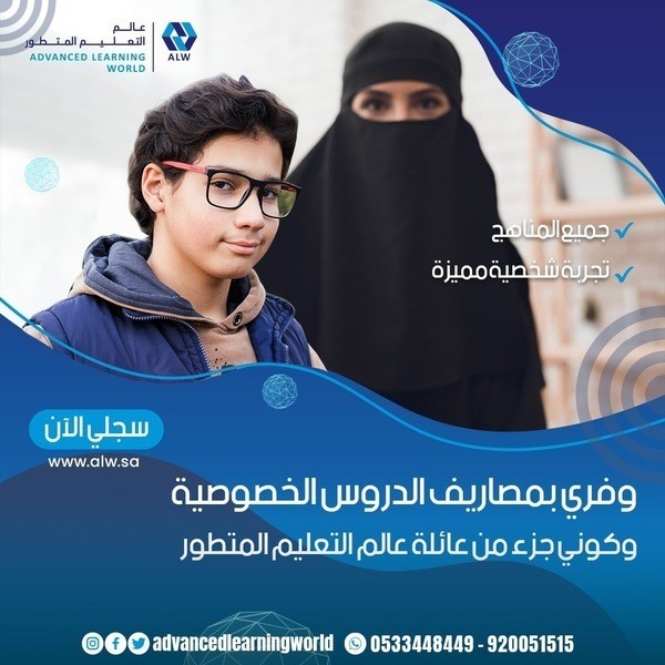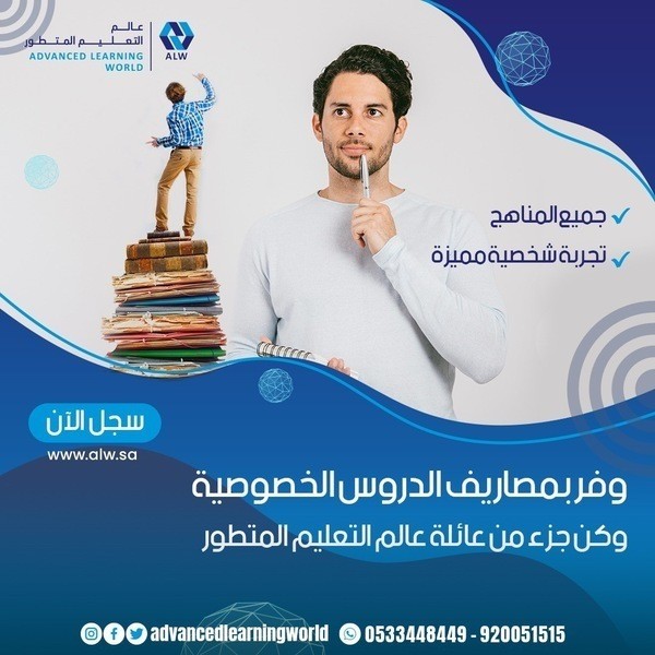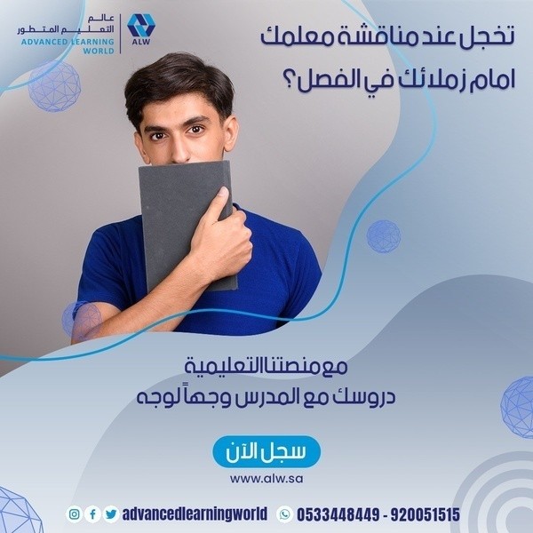 https://i.suar.me/dx6nE/l أفضل منصة تعليم الكتروينة في السعودية عالم التعليم المتطور "مستقبل التعليم في السعودية" حلول تعليم ذكية وحديثة تم وضعها بناءا على المناهج الوطنية بالمملكة العربية السعودية واحدث طرق التعليم التي وصلت إليه دراسات علم النفس والاجتماع والتربية في العالم. "منصة عالم التعليم المتطور خيارك الأفضل لمستقبل أفضل لأطفالك" https://i.suar.me/jzq61/l تفضل بزيارة منصتنا الرائد في مجال التعليم: متاح التسجل المجاني التجريبي لمنصتنا: https://alw.sa/ عن عالم التعليم المتطور؟ "عالم التعليم المتطور" عبارة عن منصة تعليمية عبر الإنترنت، تضم أفضل طرق التعليم الرقمية الحديثة والتقليدية بمحتوى تفاعلي مميز وحصص صفية مباشرة. نقدم على منصتنا: دروس تقوية للمناهج الوطنية السعودية: من خلال تقديم المناهج بطريقة تفاعلية من خلال فيديوهات تم اعدادها باحترافية وبطرق علمية متطورة: دروس تقوية ومدرسة افتراضية كاملة لجميع الصفوف الدراسية ابتداء من مرحلة التعليم المتوسط لتشمل لاحقا المرحلة الابتدائية و الثانوية، اننا نعمل بشكل دؤوب ومستمر لتطوير منصتنا لتشمل جميع مراحل الدراسة للمناهج السعودية، ومناهج المدارس الدولية. (دروس تقوية في مادة الدراسات الاسلامية – دروس تقوية في مادة الرياضيات – دروس تقوية في مادة اللغة العربية – دروس تقوية في مادة العلوم – دروس تقوية في مادة الدراسات الاجتماعية – دروس تقوية في مادة الحاسب الألي - دروس تقوية في مادة اللغة الانجليزية). يتم تقديم الدروس من خلال فيديوهات مهيئة بشكل علمي لشد انتباه الطالب واثارة فضوله وعدم تشتيته وشعوره بالملل وفقاً لاحدث الدراسات في مجال علم التدريس.، لايصال الفكرة للطالب بشكل سلس ومبسط بالإضافة إلى تمارين تفاعلية للتأكد من فهم الطالب. ويمكن للطلاب الدردشة مع معلمهم ومرشدهم الخاص بهم عبر ميزة المراسلة الفورية على لوحة التحكم الخاصة به، أو يمكنه التحدث إليه عبر الفيديو. وايضا يستطيع الأهل التحدث مباشرة مع المعلم والمرشد الأكاديمي. https://i.suar.me/838xM/l تحت اشراف كادر تعليمي ذو خبرة عالية ومميز على مستوى المملكة العربية السعودية: يشرف على الدروس التعليمية أكاديميون مختاريين بدقة وعناية من الأستاذة والمشرفين والمرشدين الاجتماعيين والأكاديميين الحاصلين على أفضل الشهادات العليا في مجال التربية والتعليم. دروس ومراجعات بشكل مباشر: بالاضافة إلى الفيديوهات التعليمية يوجد لدينا مجموعة من الاساتذة والمدرسين المستعدين لاعطاء دروس ومراجعات بشكل مباشرة مع الطالب. لماذا تختار منصة عالم التعليم المتطور: منصتنا قائمة على التعليم المجدول: - ما يعني ذلك أن جميع دورسنا ودوراتنا قائمة على مناهج التعليم في المدارس الحكومية والمدارس المعتمدة في المملكة. الدروس متاحة في أي وقت: - تتميز منصتنا بالمرونة حيث يمكن للطالب العودة إلى الدروس السابقة في أي وقت يريد "فلا تقلق لن يفوت طفلك أي دروس"، وبالتالي يتاح للطالب الوقت لمتابعة أنشطته الأخرى واستغلال الوقت بطريقة صحيحة. منصتنا ممكن أن تكون بديلا للتعليم التلقيدي: - إن التعليم التفاعلي هو مستقبل التعليم في العالم، ومنصتنا مناسبة جدا للتعليم المنزلي كبديل للتعليم التقليدي بل وأفضل من خلال تقديمنا لأحدث طرق التعليم. متعة التعلّم: حققنا معادلة مهمة جدا في التعليم: حرصنا في محتوانا على تقديم المعلومات للطلاب بطريقة ممتعة ومشوقة لتصل المعلومات بشكل أفضل وترسيخها في ذهن الطالب بشكل قوي. " الحفظ مع فهم واستيعاب كمال للدروس والمعلومات التي يتلاقاها طلابنا هو ما يهمنا بالدرجة الأولى لأن الفهم هو ما يرسخ الدروس والمعلومات في ذهن وذاكرة الطالب". خيارات متعددة: - احصل على دروس فردية أو شارك في جلسات الفصول الجماعية مع أصدقائك والمستخدمين الآخرين. - يمكنك التواصُل من خلال صوت ودردشة بجودة عالية عبر الرسائل الفورية ومشاركة المحتوى بسهولة، الأمر بسيط جدًا وفي غاية الروعة. https://i.suar.me/3pejL/l مرشد شخصي للطالب: من خلال الاش