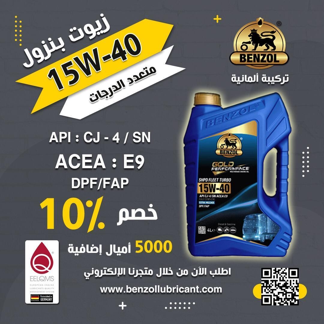 API SN/CF ACEA C3 API SN/CF ACEA A3/B4 API CJ-4/SN ACEA E9 (للسيارات الاوربية والكورية والصينية) - زيوت بنزول مصنعة من زيوت اساس بكر بتركيبة المانية متطورة من قبل افضل خبراء صناعة الزيوت في العالم - زيوت بنزول تخضع لنظام EELQMS الأشد صرامة ( نظام ادارة الجودة الأوربية لزيوت المحركات ) وتحمل تلك العلامة على جميع المنتجات - تحافظ وتطيل من عمر أنظمة المعالجة : ( DPF / FAP ) - زيوت بنزول تحمي المحرك من الأكسدة - زيوت بنزول تقلل من احتكاك الاجزاء المتحركة و تعمل باعلي كفائة في ظروف التشغيل الشاقة مما يطيل عمر المحرك . - زيوت بنزول توفر الوقود - زيوت بنزول تمتاز باستعمال افضل الاضافات في العالم مما يجعلها افضل - زيوت يمكنك استخدامها للمحافظة علي محرك سيارتك بنزول يلبي جميع المواصفات 0W40 API SN/CF ACEA C3 0W30 API SN/CF ACEA C3 5W40 API SN/CF ACEA C3 5W30 API SN/CF ACEA C3 10W40 API SN/CF ACEA A3/B4 15W40 CJ-4/SN ACEA E9 زيوت فائقة الأداء ومتعددة الدرجات تخليقية كاملة بتقنية وإضافات (ألمانية ) حاصل على ضمان الجودة الأوربية لزيوت المحركات (EELQMS) تعمل بشكل مثالي مع المحركات الحديثة (بنزين – ديزل) متعددة الصمامات والمزودة بشاحن توربيني وتقنية الحقن المباشر تحافظ وتطيل من عمر أنظمة المعالجة : ( DPF / FAP ) اعوام من العطاء ونتطلع لتقديم المزيد https://benzollubricant.com/ https://i.suar.me/dXEYl/l https://i.suar.me/jXEGW/l https://i.suar.me/8Lv2n/l https://i.suar.me/LBvMj/l https://benzollubricant.com/shop/ |