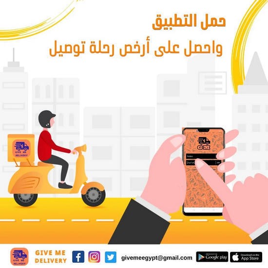 GIVE ME من أهم التطبيقات الرائدة في مجال طلب الطعام وتوصيله عبر الانترنت استخدم تطبيق GIVE ME لطلب وجبة طعامك المفضلة من أكثر من 300 مطعم مختلف مسجل ومجموعة واسعة من المطاعم المحلية والعالمية للتمتع بوجبتك لا تقتصر على توصيل الطعام فقط نقدم خدمة التوصيل لكافة انواع المتاجر الاخرى وعلي سبيل المثال؛ الصيدليات، السوبر ماركت، محلات الزهور، مستحضرات التجميل، توصيل أثاثات واكسسوارات، مستلزمات الاطفال، مستلزمات الحيوانات، الالكترونيات ومحلات الألعاب وجميع الاحتياجات الشخصية |