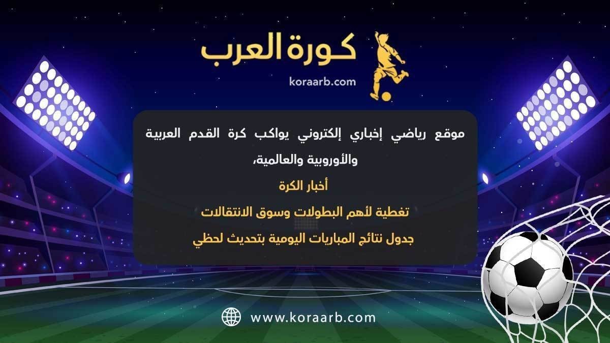 https://i.suar.me/jWX3m/l كورة العرب، موقع رياضي إخباري إلكتروني يواكب كرة القدم العربية والأوروبية والعالمية، أخبار الكرة ونتائج مباشرة وجداول لأهم المباريات اليومية. تغطية أهم أخبار كرة القدم العربية والسعودية والمصرية، وأخبار الدوريات الأوروبية الكبرى ودوري أبطال أوروبا، ومتابعة كاملة لسوق الانتقالات وأخبار اللاعبين. بث مباشر لجميع البطولات العالمية والعربية والأوروبية. بث مباشر مباراة مانشستر يونايتد، بث مباشر مباراة وست هام يونايتد، بث مباشر مباراة نيوكاسل يونايتد، بث مباشر مباريات الدوري السعودي، بث مباشر مباريات الدوري المصري، بث مباشر مباريات الدوري الإنجليزي، بث مباشر مباريات الدوري الألماني، بث مباشر مباريات الدوري الإسباني، بث مباشر مباريات دوري أبطال أوروبا، بث مباشر مباراة باريس سان جيرمان. نقل لأهم المباريات اليومية وجداول خاصة بمواعيدها وتحديث لحظي للنتائج، وتقارير وآراء خاصة بعد انتهاء كل مباراة. لزيارة موقعنا الإلكتروني كورة العرب من هنا https://www.koraarb.com/ |