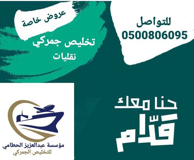 مؤسسة عبدالعزيز عبدالله الحطامي للتخليص الجمركي: تعلن عن تقديم خدمات التخليص الجمركي والنقل عبر المنافذ التالية: 1/ جمرك ميناء الملك عبدالله برابغ . 2/ جمرك مطار الملك عبدالعزيز الدولي بجدة. 3/ جمرك ميناء جدة الاسلامي. 4/جمرك مطار الملك خالد الدولي بالرياض 5/ جمرك ميناء الدمام 6/جمرك ميناء البطحاء 7/جمرك ميناء الجاف دقة في التنفيذ والسرعة بالإنجاز للتواصل/0500806095 https://i.suar.me/GqeKq/l https://i.suar.me/093X5/l |