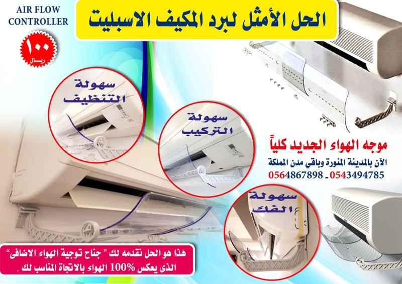 موجه هواء التكييف الاسبليت https://i.suar.me/PE45K/m https://i.suar.me/pX2Y6/m https://i.suar.me/ErmBl/m https://i.suar.me/WWAmx/m يمكنكم شراؤه من سوق دوت كوم عبر الرابط التالي https://goo.gl/Huvnft • هل تعاني من برد المكيفات • هل تعانى من الم في فقرات الرقبة والعمود الفقري • هل ينزعج أطفالك من برد المكيف أثناء النوم • غالبا يصعب عليك تغير مكان مكتبك فى العمل أو سرير طفلك أو توزيع غرفة نومك بالشكل الذى يخفف هذا المعاناة اليومية. هذا هو الحل نقدمه لك " جناح توجية الهواء الاضافى الذى يعكس 100% الهواء بالاتجاة المناسب لك " مواصفات المنتج . 1. جناح توجية هواء المكيف قابل للدوران لتغيير اتجاه التدفق المباشر لهواء التكييف 2. انحناء وعرض جناح التوجية يغير اتجاة تدفق الهواء بشكل انسيابي 3. قابل للتعديل ليناسب عرض جميع المكيفات بين 60 سم إلى 115سم 4. سهل التركيب بملاقط أسفل المكيف أو على الجدار 5. مجهز بثقوب للتثبيت بالبراغى لزيادة المتانة 6. قابل للازالة بسرعة وسهولة للتنظيف او الطى 7. قابل للازاحة عند الرغبة فى التدفق المباشر ل هواء التكييف 8. مسجل كبراءة اختراع فى مدينة الملك عبدالعزيز للعلوم والتقنية KACST 9. إمكانية التركيب من دون ثقوب بالجدار السعر . 100 ريال للقطعة لمكيفات الاسبليت زيارة الفنى التوصيل والتركيب 50 ريال للقطعة أو اثنين أو ثلاثة اكثر من 3 قطع يحسب توصيل وتركيب القطعه 20 ريال التركيب للمساجد مجانى الآن بالمدينة المنورة وباقي مدن المملكة 0543494785 - 0564867898 |