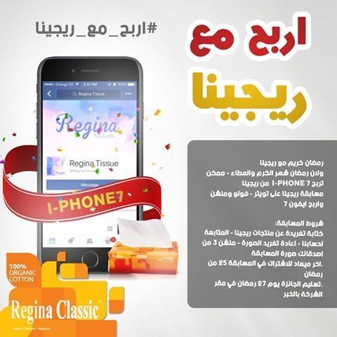 رمضان كريم مع ريجينا ولان رمضان شهر الكرم والعطاء - ممكن تربح I-phone 7 من ريجينا مسابقة ريجينا على تويتر - فولو ومنشن واربح ايفون ٧ شروط المسابقة: كتابة تغريدة عن منتجات ريجينا - المتابعة لحسابنا - اعادة تغريد الصورة - منشن 3 من اصدقائك صورة المسابقة اخر ميعاد للاشتراك في المسابقة 25 من رمضان - اعلان الفائز والسحب يوم 27 من رمضان https://i.suar.me/MWdMW/m |