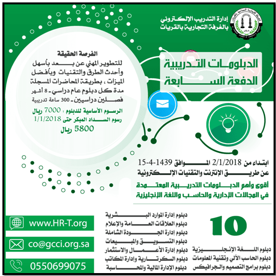 الدبلومات التدريبية الدفعة السابعة المعتمدة رسميا | عن بعد https://i.suar.me/qJ9qK/m للاطلاع على الدبلومات التدريبية الإدارية والتقنية المتاحة – اضغط هنا https://goo.gl/ZvvnQQ |