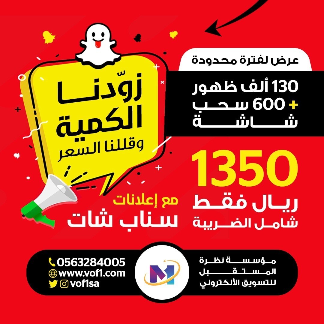 زودنا الكمية......وقللنا السعر مع إعلانات السناب شات 130 ألف ظهور + 600 سحبه للشاشة ب ( 1350 ) ريال فقط شامل الضريبة https://i.suar.me/LB2WG/l عرض لفترة محدودة ....................................... للطلب والإستفسار يرجى التواصل مع خدمة العملاء 0563284005 للتواصل واتساب https://bit.ly/2ZdfTZ6 لزيارة الموقع http://bit.ly/3qliNXy تويتر وإنستغرام : vof1sa ▪️▪️▪️▪️▪️ مؤسسة نظرة المستقبل للتسويق الإلكتروني (إختيارك الأول) https://i.suar.me/2man3/l |