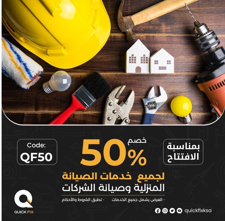 عندك شيء محتاج تصليح؟! استفد من عرض خصم 50% https://i.suar.me/lKomN/l يسعدنا أن نعلن عن إطلاق تطبيق #كويك_فكس لخدمات #صيانة المنازل والشركات وبمناسبة الافتتاح يسرنا أن نقدم لكم خصم (50%) على جميع خدمات الصيانة ولمدة شهر من الإطلاق. نتمنى لكم تجربة رائعة باستخدام التطبيق !! كويك فكس #صيانةسريعةبضغطة_زر حمل تطبيق: Quickfix SA من خلال الرابط https://l.ead.me/quickfix أو من خلال: (Apple Store / Google Play) واستخدم الكود: QF50 وللاستفسار: 0536868683 ----------------------- It’s our pleasure to announce the launch of #QuickFix App for Home & Commercial #Maintenance Works. We are happy to let you know that all maintenance services will be on (50% off) during the first month of the lunching We wish you a great experience using our App #Quickfix_at_your_fingertips Download: #Quickfix SA App https://l.ead.me/quickfix, or from (Google Play / Apple Store) and use the code: QF50 للمزيد تابع الفيديو https://youtu.be/HJk1vC6EHH8 |