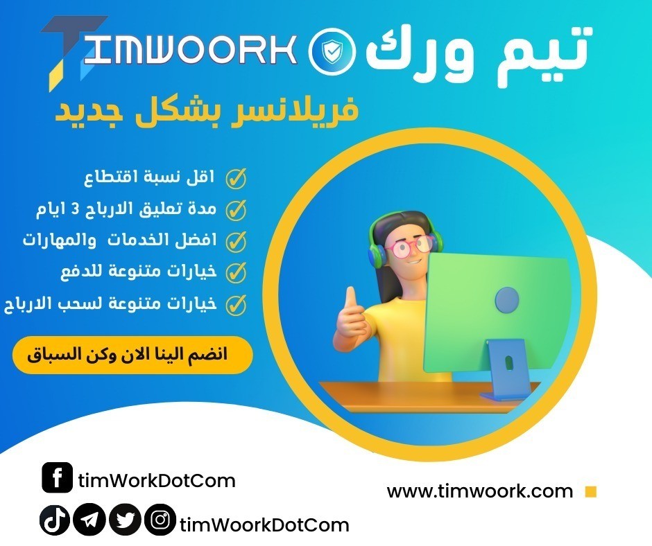 https://i.suar.me/mwwlj/l تيموورك هو سوق عربي لبيع وشراء الخدمات المصغرة، بإمكانك انشاء حساب على الموقع ووضع البيانات الخاصة ثم إضافة المهارات والخدمات التي تستطيع تقديمها عبر الانترنت مثل الترجمة , ادخال البيانات , التصميم , التدريس , البرمجة .... الخ ثم تقوم بنشر الخدمة ونحن بدورنا نقوم بالتسويق الكامل للموقع وجلب المشترين وهنا يحصل العمل ونحن كموقع نأخذ اقل نسبة أرباح بالمقارنة مع المواقع الأخرى لبيع وشراء الخدمات المصغرة ... وهنا تصبح دورة العمل كاملة البائع قام ببيع خدمته واستفاد من ثمن الخدمة والمشتري حصل على النتائج المرجوة https://i.suar.me/KggO8/l مدة تعليق الأرباح 3 أيام فقط ويوجد نسبة اقتطاع مخفضة لأصحاب الهمم القادرين على العطاء و ربات البيوت الموقع https://timwoork.com/ شرح سريع بلهجة بلاد الشام لاضافة الخدمات والاستفادة من الموقع https://fb.watch/d39_yeCJav/ شرح سريع باللهجة المصرية لاضافة الخدمات والاستفادة من الموقع https://fb.watch/d3azpv7yDF/ شرح التسجيل باللهجة الجزائرية https://youtu.be/Txs95F77sZw شرح التسجيل بالموقع والاستفادة من الخدمات بشكل تفصيلي https://fb.watch/c1OykK7g6O/ جروب التيلجرام https://t.me/timwoork الانستجرام https://www.instagram.com/timwoorkdotcom/ التويتر https://twitter.com/timwoorkDotCom https://i.suar.me/BWWEd/l https://i.suar.me/QrroO/l |